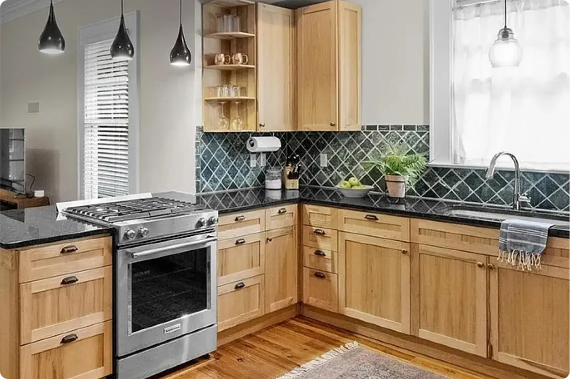 Drag the slider to see how outdated cabinets become beautiful modern finishes.